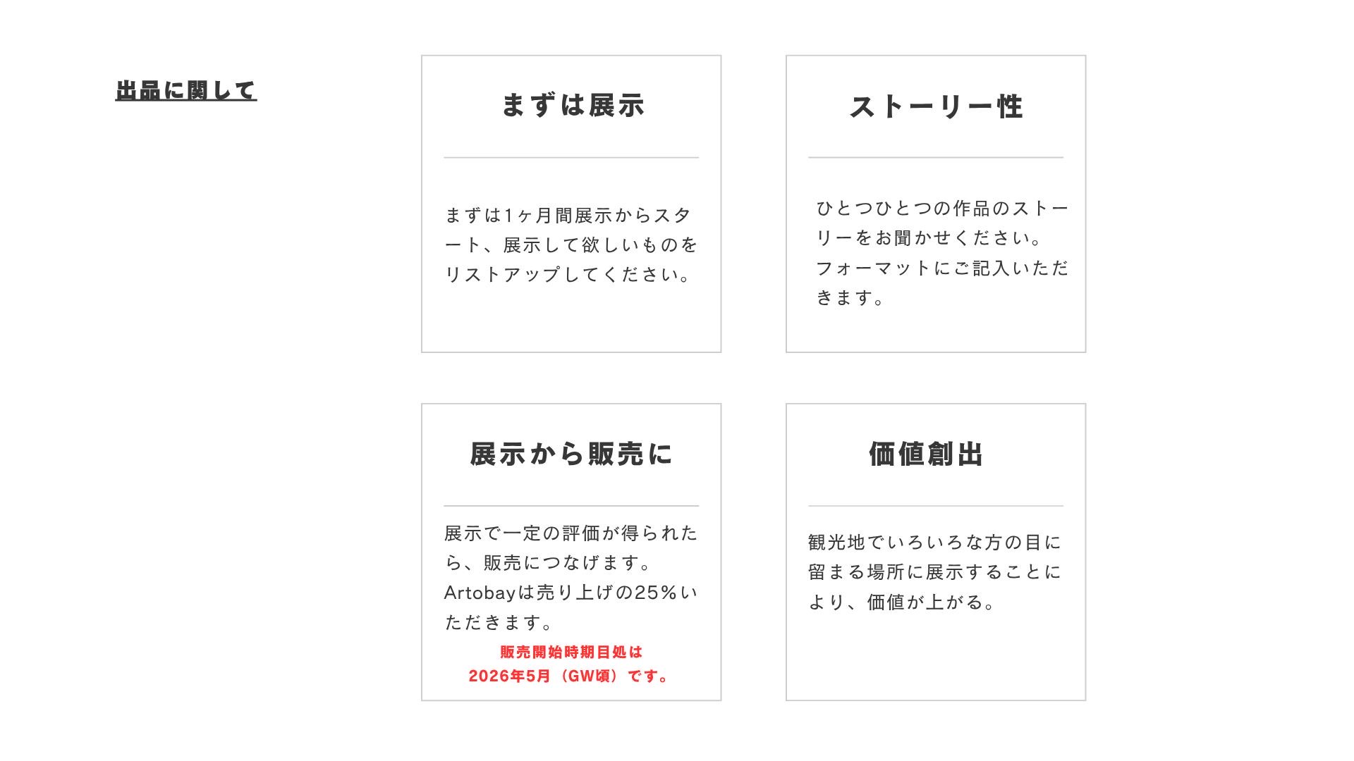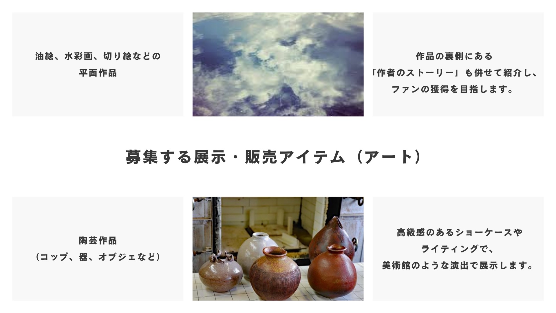 作品そのものだけでなく、その背景にある「作者の想い」を紹介することで、共感と付加価値を創出します。