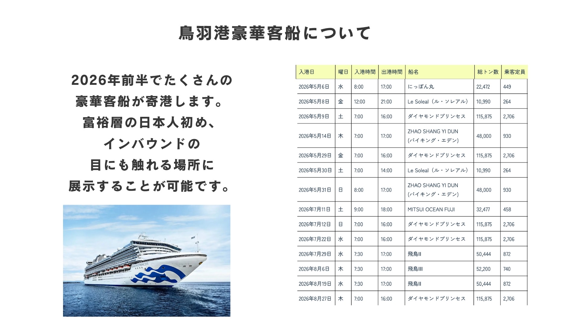 多様な船や人が集まり、交流し、旅立つ場所という意味を込めています。